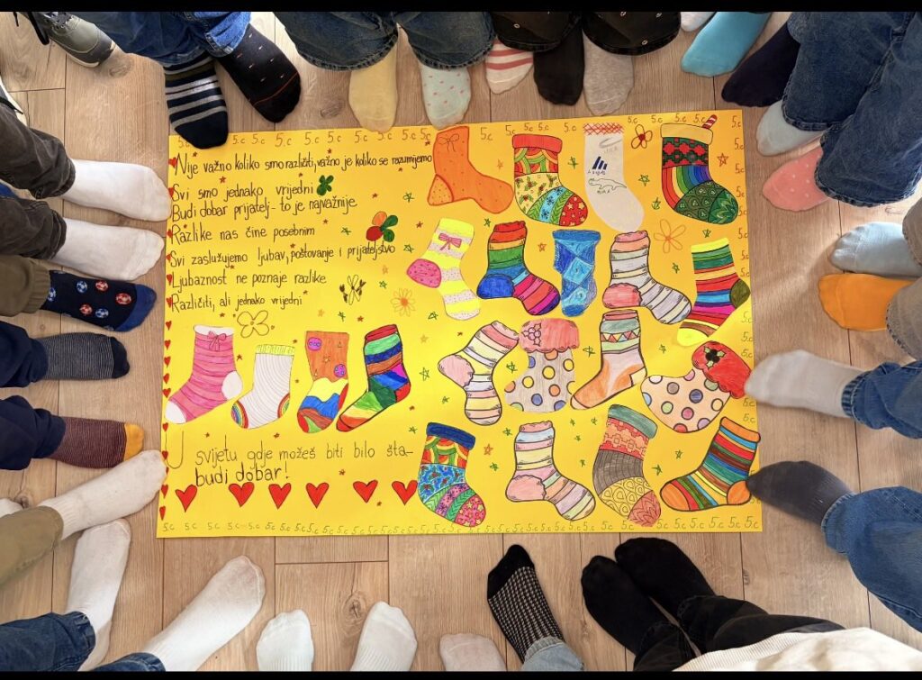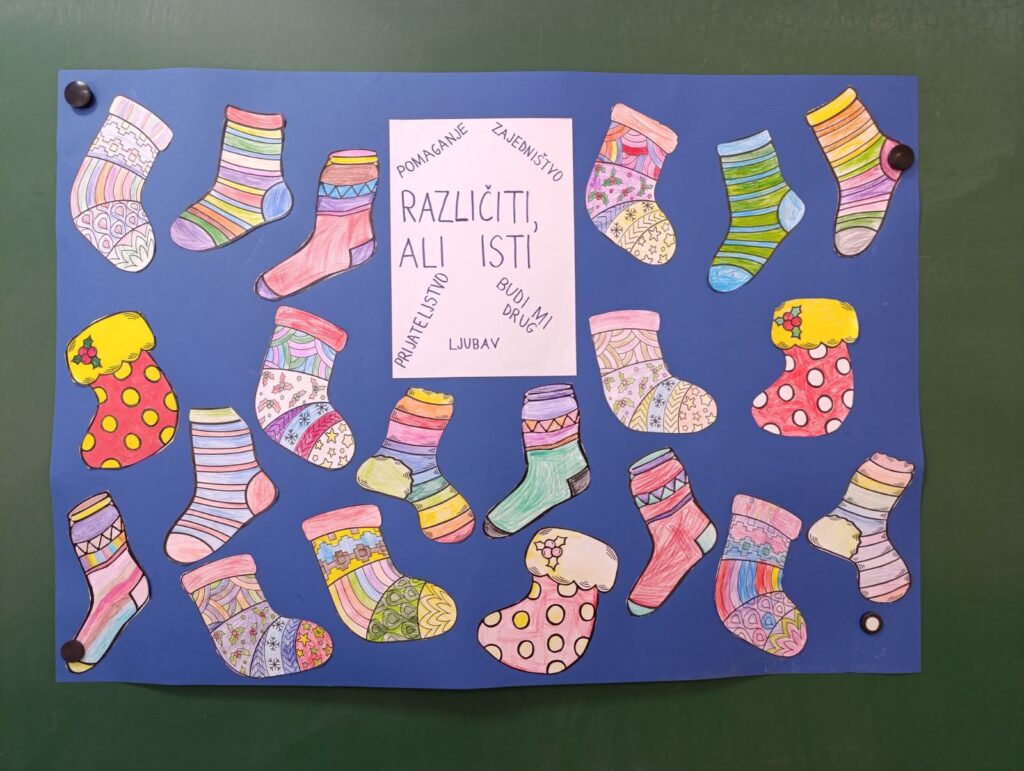 Na kraju časa učionica je bila puna šarenih čarapa i lijepih poruka o prijateljstvu, prihvatanju i zajedništvu.