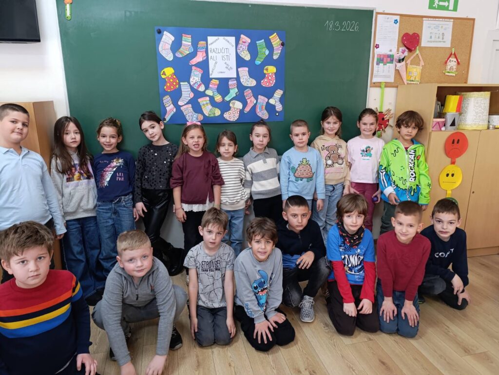 Odjeljenje 3.a obilježilo je Svjetski dan osoba s Down sindromom kroz različite aktivnosti usmjerene na razvijanje empatije i prihvatanja. Pod sloganom „Različiti, ali zajedno“, učenici su pokazali koliko je važno uvažavati i poštovati različitosti. Kroz druženje i zajednički rad poslali su poruke podrške.