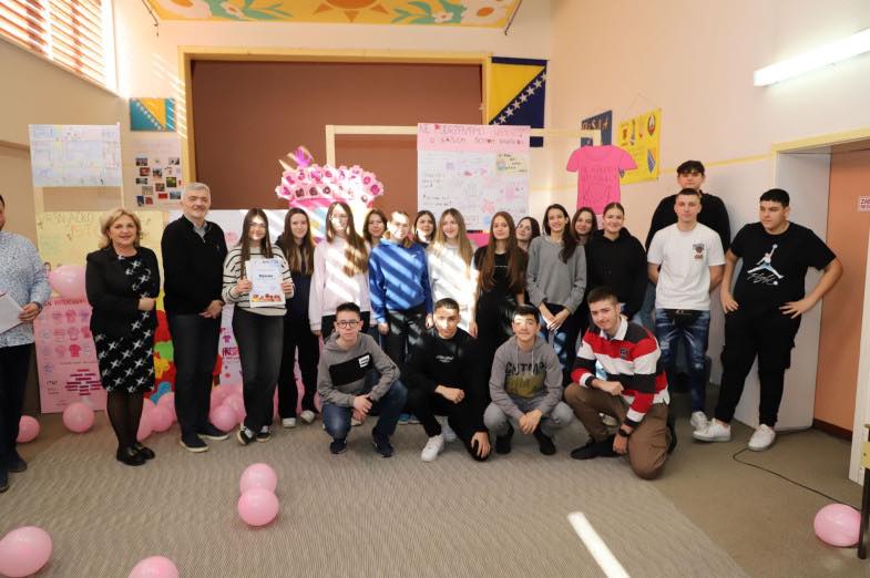U našoj školi je danas svečano obilježen Međunarodni dan borbe protiv vršnjačkog nasilja – Dan ružičastih majica u okviru realizacije preventivnog programa “Vršnjačko nasilje – NE u mojoj školi”, a koji implementira KJU Porodično savjetovalište.